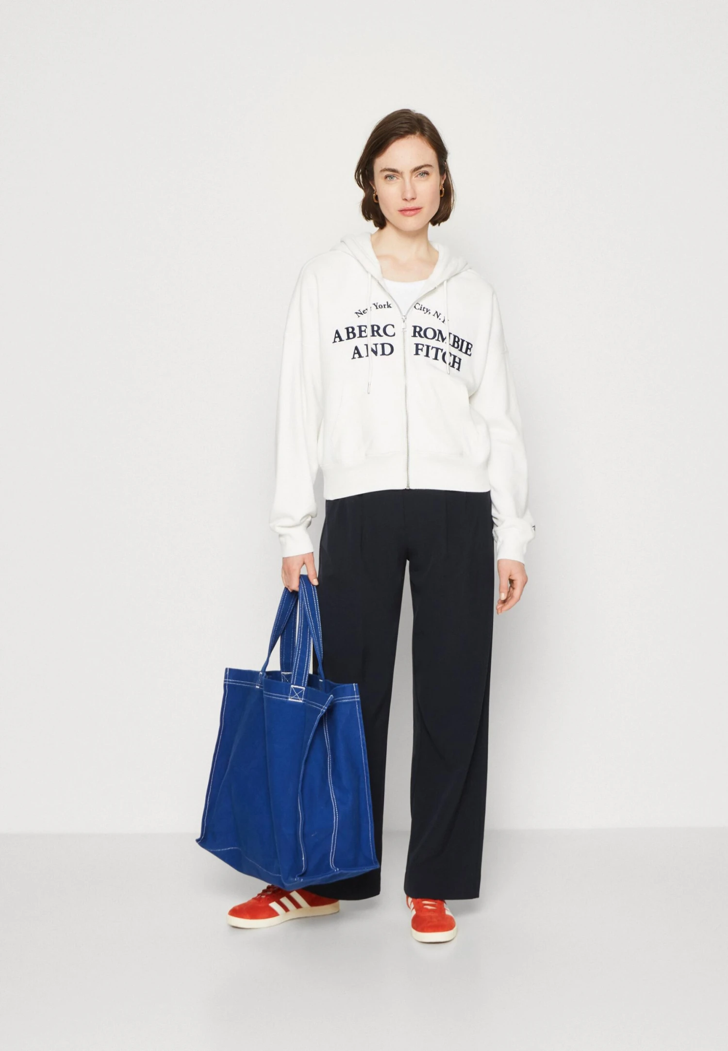 Abercrombie & Fitch Long Life Logo HoodedFelpa Con ZipCloud Dancer Off White Donna Felpe A0F21J05D-A11