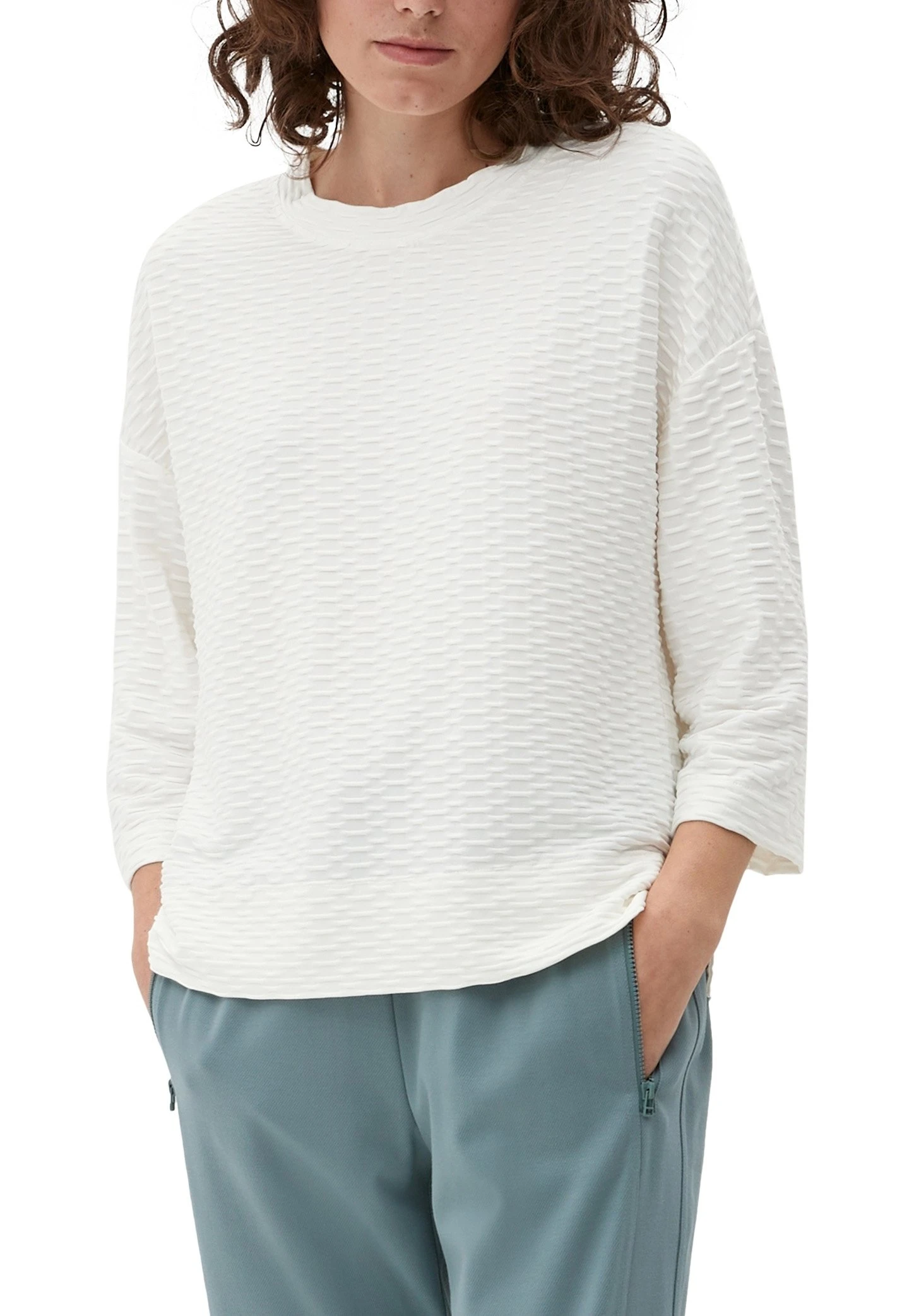 S.Oliver À Motif TexturéMaglietta A Manica LungaEcru Donna T-shirt E Top SO221D2I9-A11